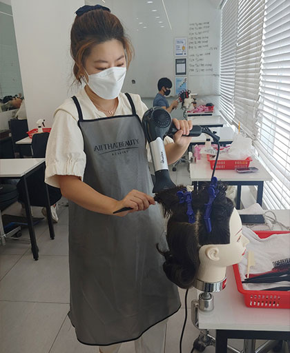 아무래도 실기 과정이 있기 때문에 올바른 자세나 규정, 완성도 등 신경 써야 할 부분이 많아서 어렵게 느껴질 수 있습니다. 그래서 연습밖에 답이 없는 것 같아요. 저도 처음에는 머리로는 이해가 되지만 손이 따라오질 못했습니다. 커트 가위질이 어려워서 손가락도 너무 아팠고, 롯드를 사용하는 것도 너무 어려웠지만 선생님께서 알려주시는 방법대로 연습하다 보니 머리와 손이 함께 이해되는 순간이 왔습니다. 여러분들도 할 수 있습니다!