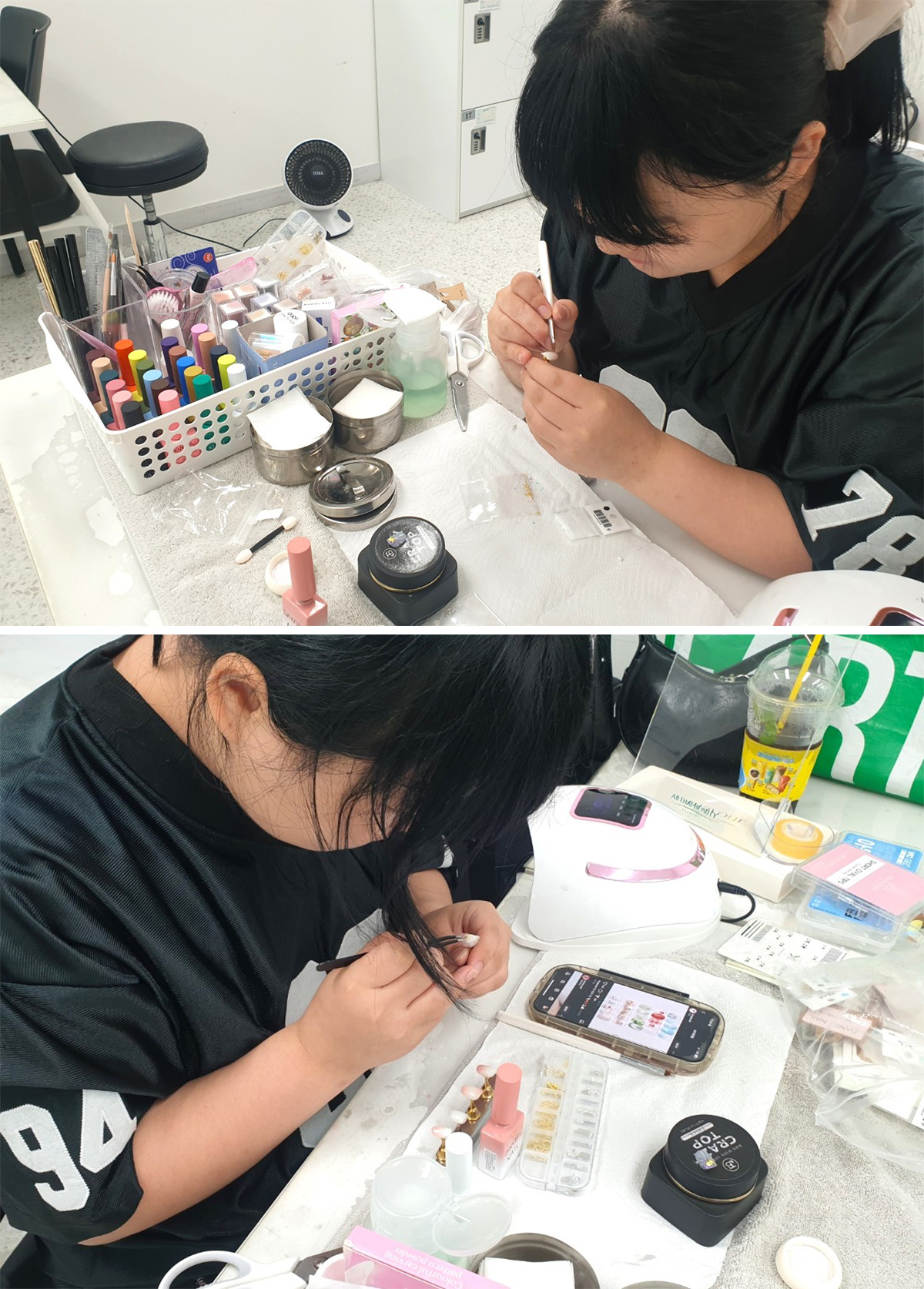 네일아트 강의를 하며 가장 도움이 되었던 점은 실습을 통한 직접적인 경험과 결과물에 대한 빠른 피드백이었습니다. 이론만으로는 다소 이해하기 어려운 기술을 수업에서 직접 경험하면서 기술을 빠르게 익힐 수 있었습니다. 그리고 강사님께 받은 구체적인 피드백과 개선 방법도 큰 도움이 되었습니다.