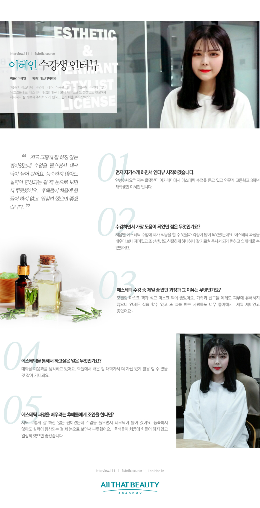 올댓스킨아트아카데미 졸업생&재학생 인터뷰입니다.